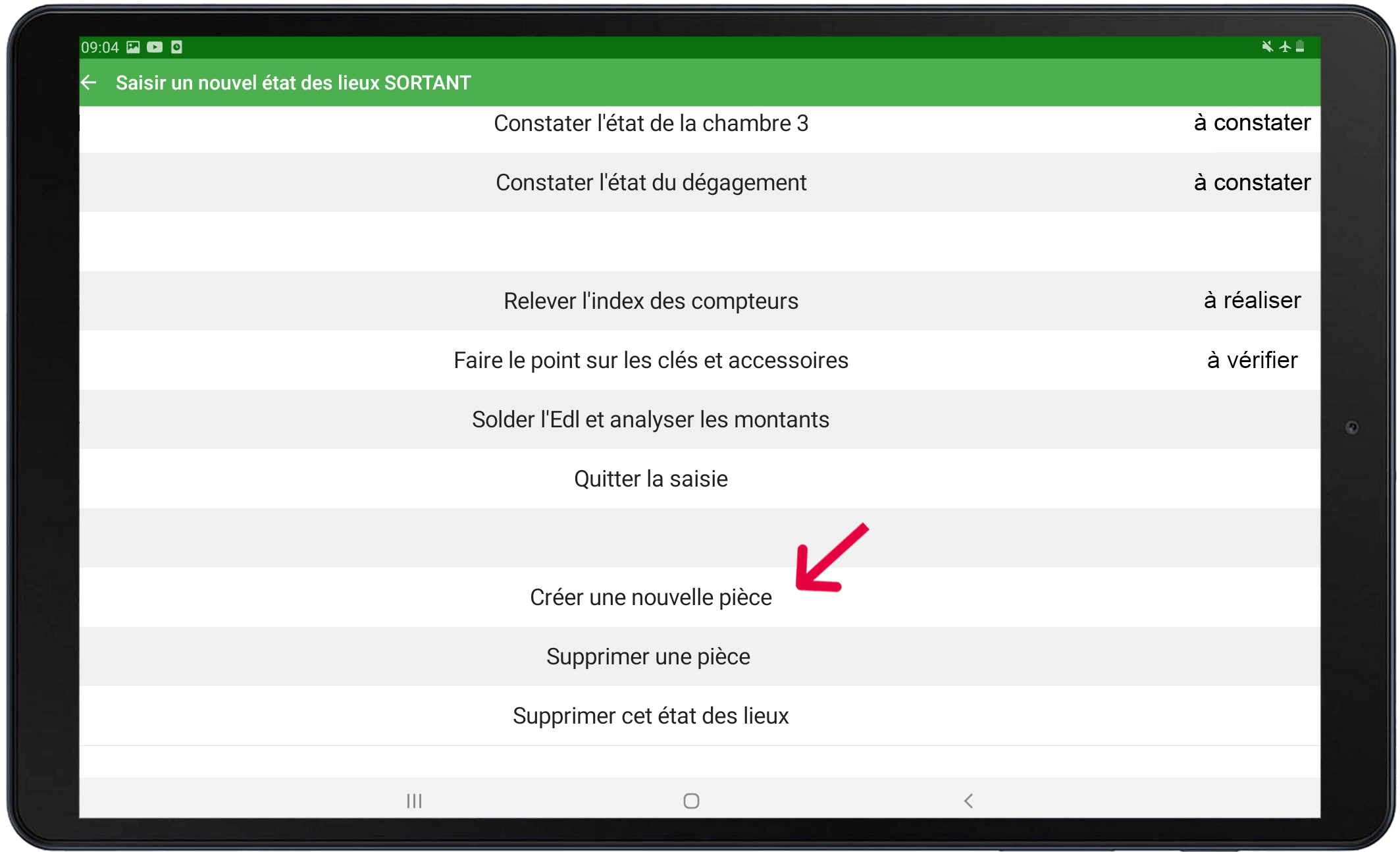 Vous la retrouvez dès que vous démarrez un état des lieux :