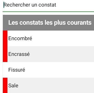 Lorsque l'on sélectionne le constat "Dégradé", ABYL vous propose automatiquement d'ajouter un constat supplémentaire (Encombré, Encrassé, Fissuré, Sale).