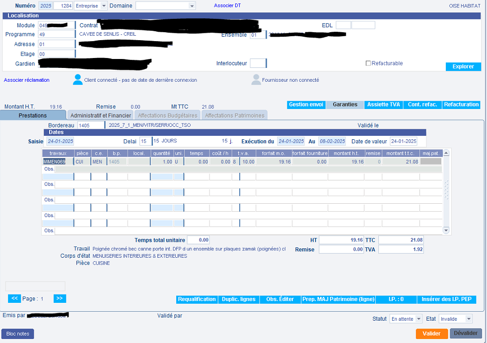 Cela va déclencher l'envoi des documents par email au locataire et si des articles ont été attribués à des travaux de réparation cela va générer un "pré-BT" sur PIH.