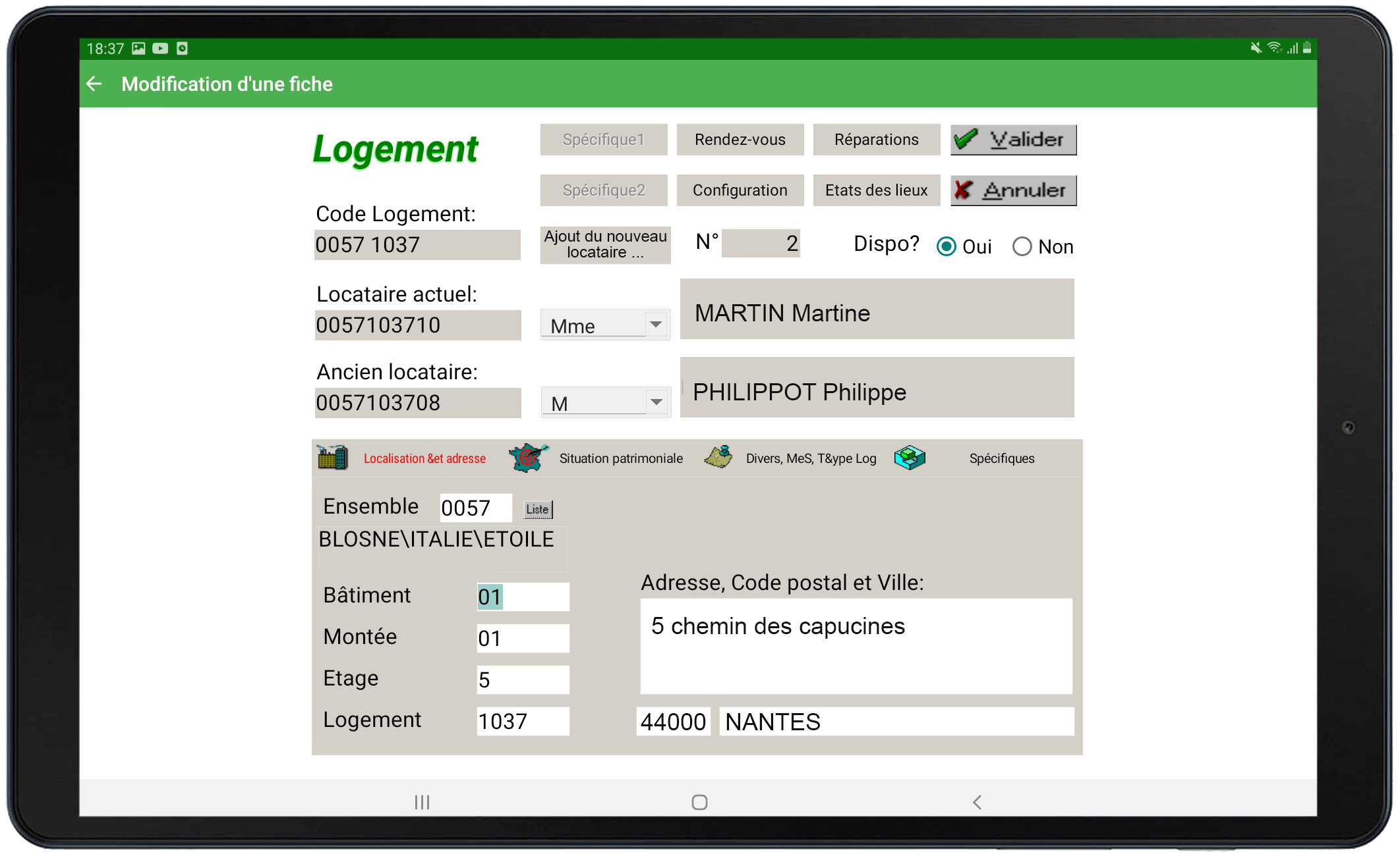 Lors de la sélection d'un logement, le menu vous propose de "Voir/Modifier la fiche Logement/Locataire" :