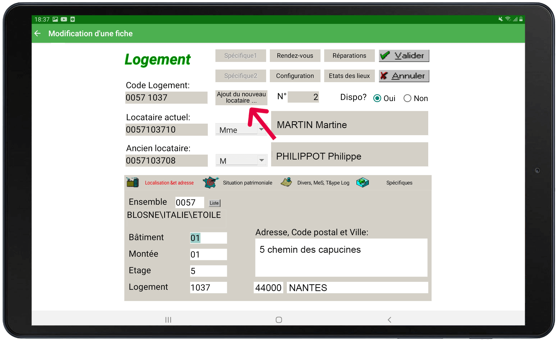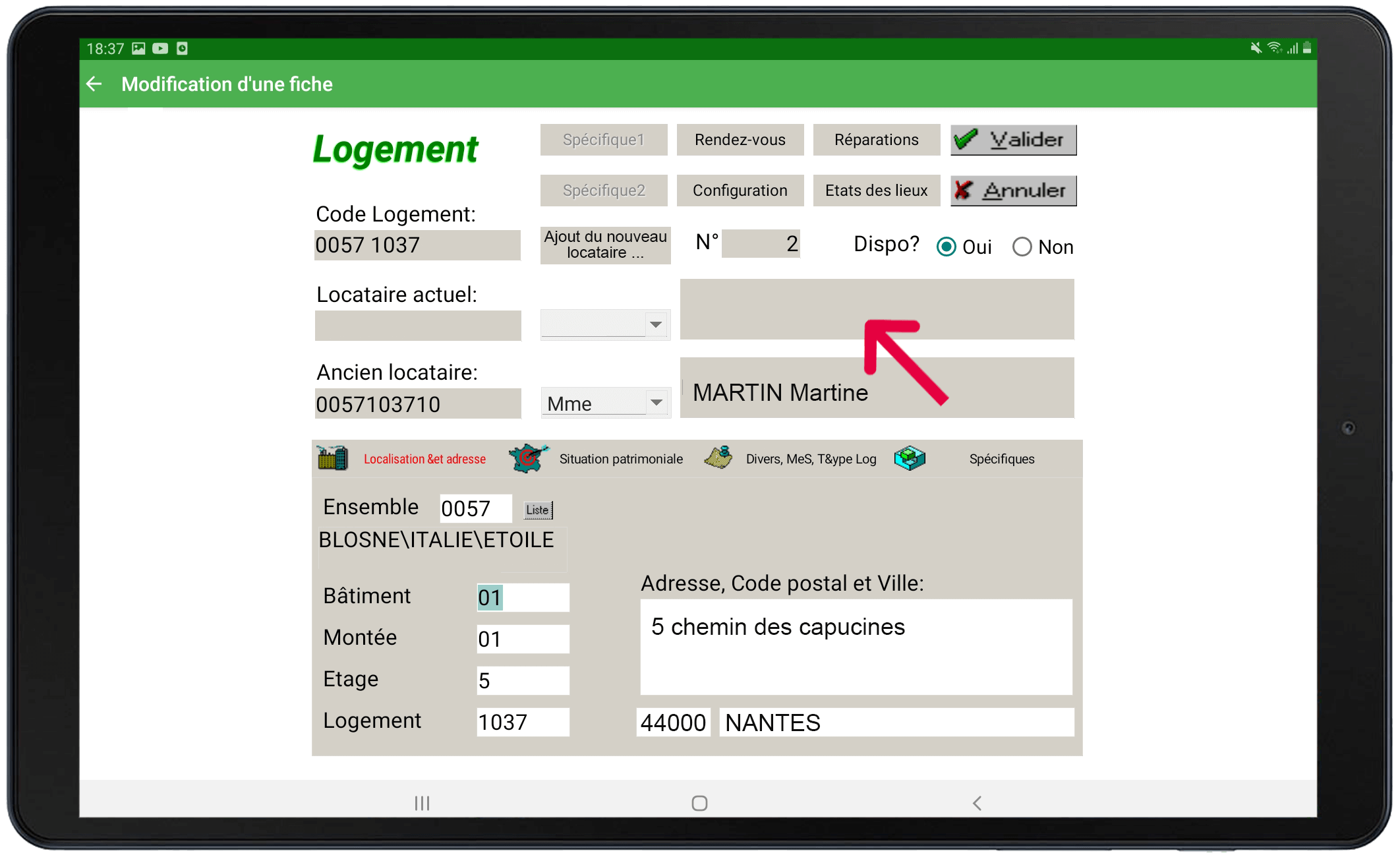- le locataire actuel n'est plus renseigné : il est à saisir manuellement.