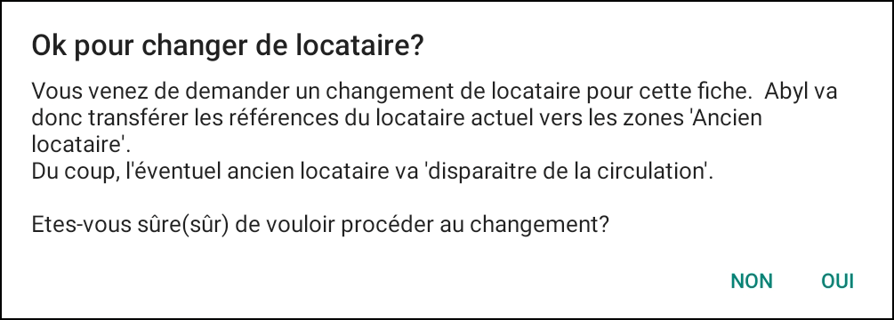 Abyl EDL va automatiquement passer le locataire actuel en ancien locataire, et libérer les champs du locataire actuel pour une saisie manuelle.