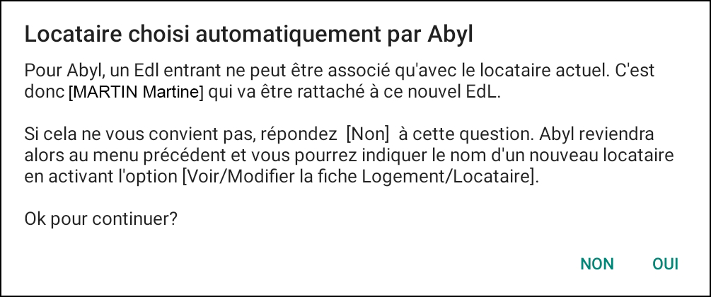 Si le locataire indiqué n'est pas celui pour lequel vous souhaitez réaliser l'état des lieux entrant, répondez "Non" et rendez-vous sur cet article :
