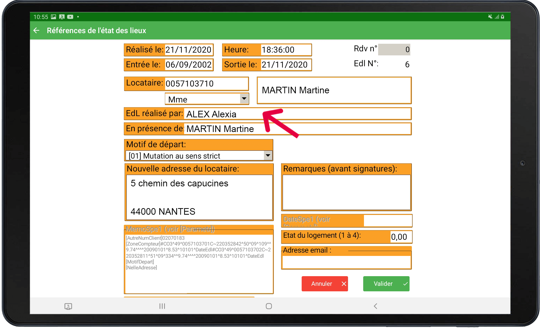 La zone "Edl réalisé par" indique le nom de la personne réalisant l'état des lieux pour l'organisme : votre nom.