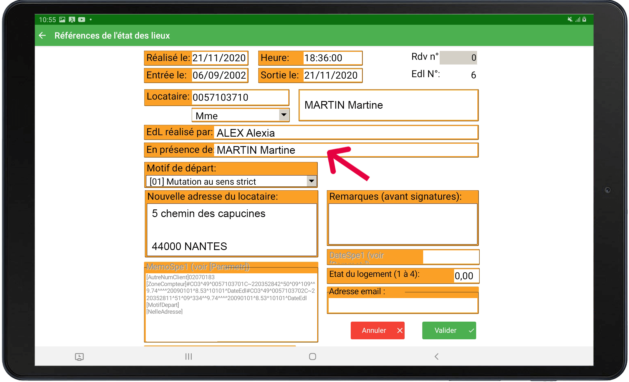 Le nom indiqué sera repris dans les documents générés à l'issue de l'état des lieux, il permettra de créer une zone de signature en votre nom.