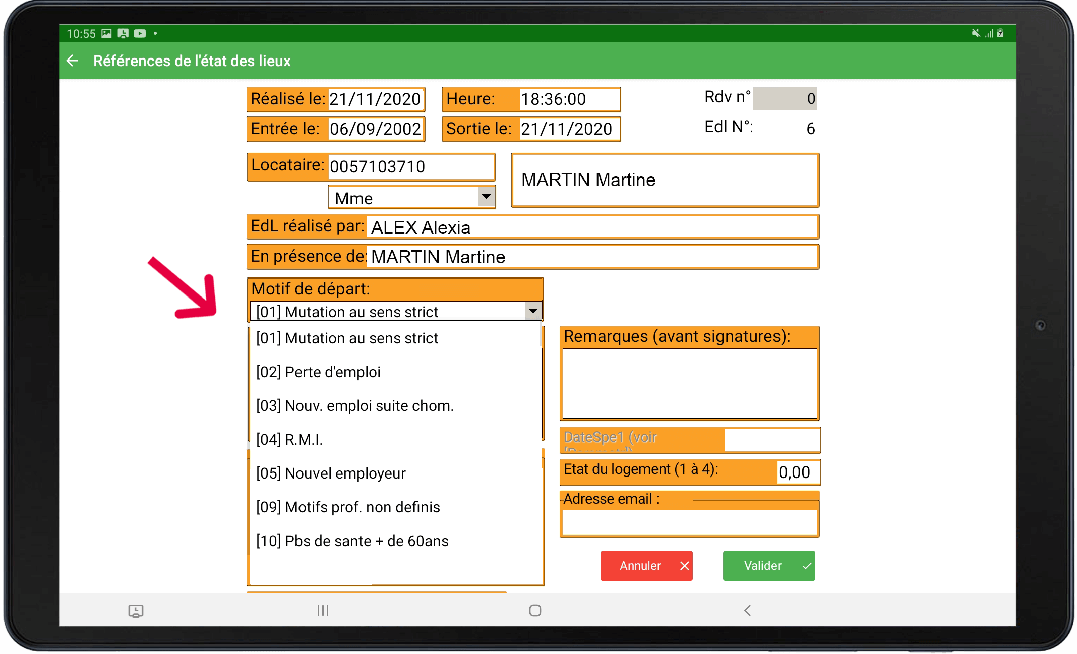 Lors d'un état des lieux sortant, le motif de départ doit être indiqué.