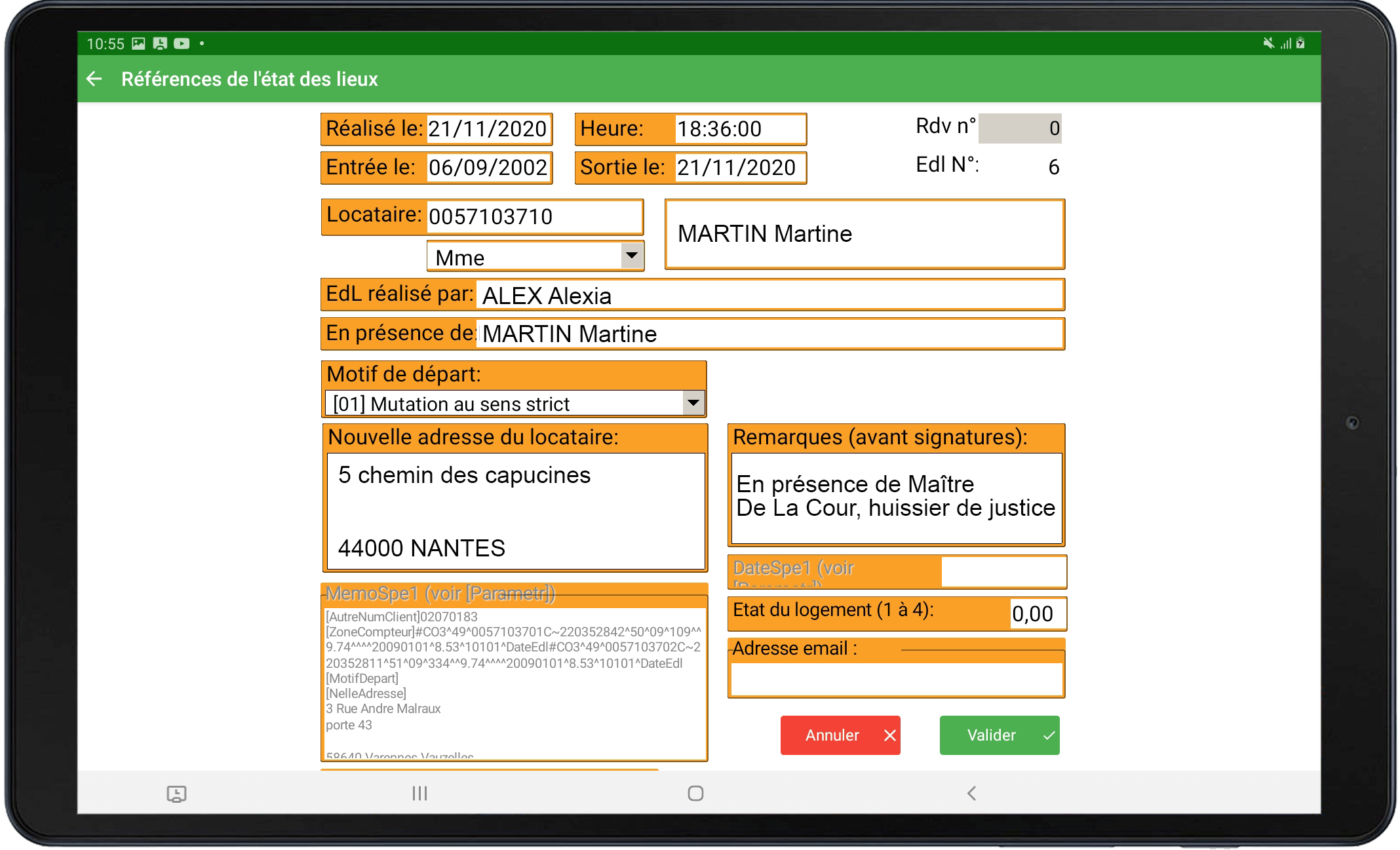 Pensez à compléter et vérifier ces informations systématiquement en début d'état des lieux.