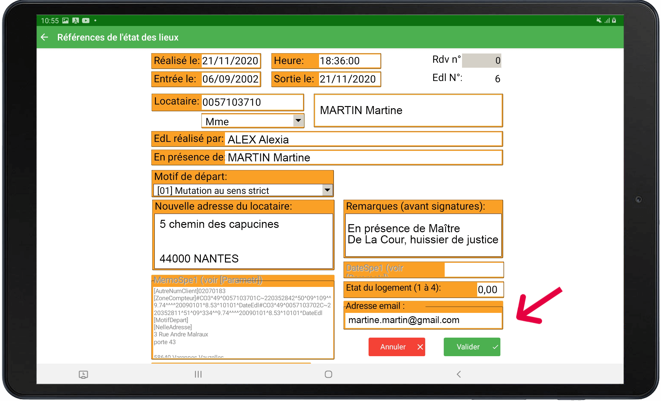 Enfin pensez à bien récupérer l'adresse email du locataire si elle n'est pas indiquée :