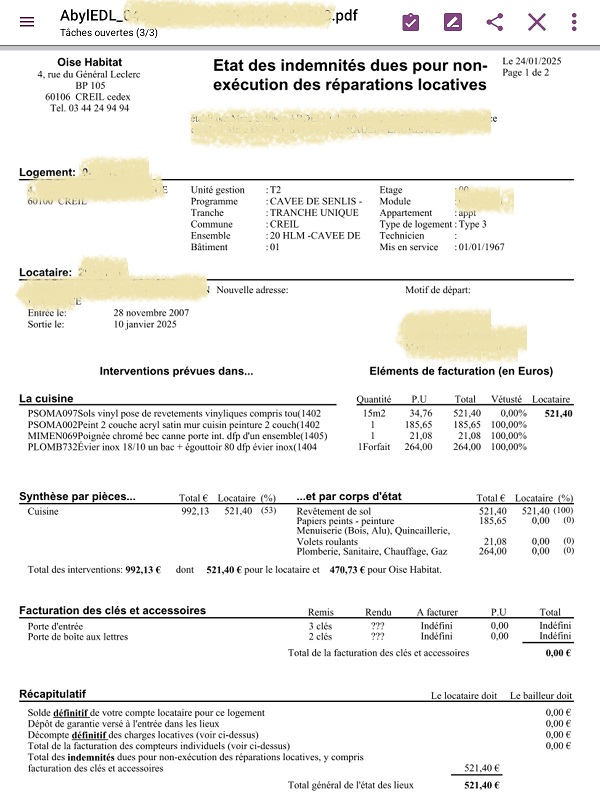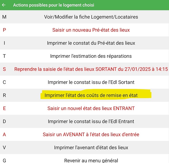 Pour cela, revenez au menu détaillant les actions pour ce logement et cliquez sur Imprimer l'état des coûts de remise en état.