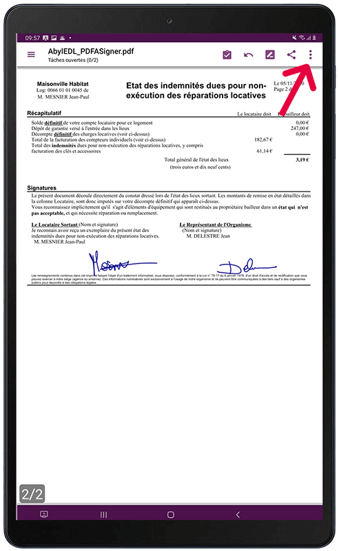 Répondez NON, le document signé s'affichera dans le lecteur PDF de la tablette.